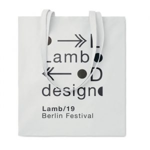 Cotton shopping bag with long handles. 140 gr/m². Produced under a certified standard for the use of harmful substances in textile.