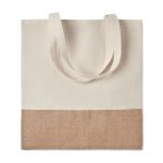 Twill cotton shopping bag with a jute detail. Long handles. 160 gr/m². Produced under a certified standard for the use of harmful substances in textile.