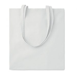 280 gr/m² recycled canvas shopping bag or beach bag. This tote bag has long handles so it can be carried by hand or over the shoulder to keep your hands free. The gusset base makes it very useful to bring a lot of items with you to the beach or when grocery shopping. The bag is made from 50% cotton and 50% recycled cotton.