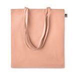 Certified organic cotton shopping bag with long handles. A classic tote bag design made to carry your daily groceries or other items. Carry the bag in your hands or over your shoulder with the long handles. Made from 100% natural organic cotton 140 gr/m².