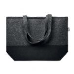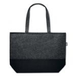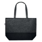 RPET felt shopping bag with long handles and coloured base. The contrasting colours of the bottom and top of this tote bag make make it noticeable and more stylish than others. An ideal bag for daily grocery shopping. Carry the bag over your shoulders to keep your hands free. This bag is made from recycled PET plastic.