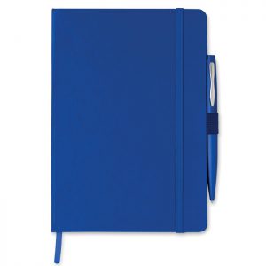 A6 recycled paper hard cover notebook. Casebound. 192 plain pages (96 sheets). Elastic closure strap and pen holder.